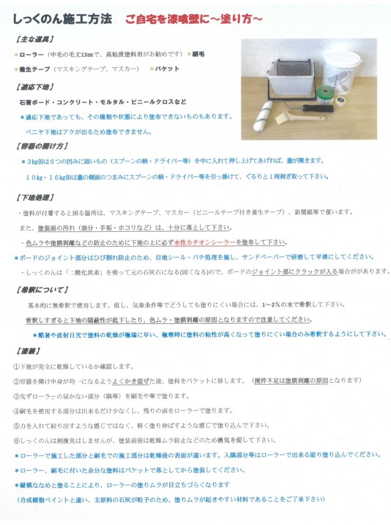 (施工にはローラーと刷毛を使用)